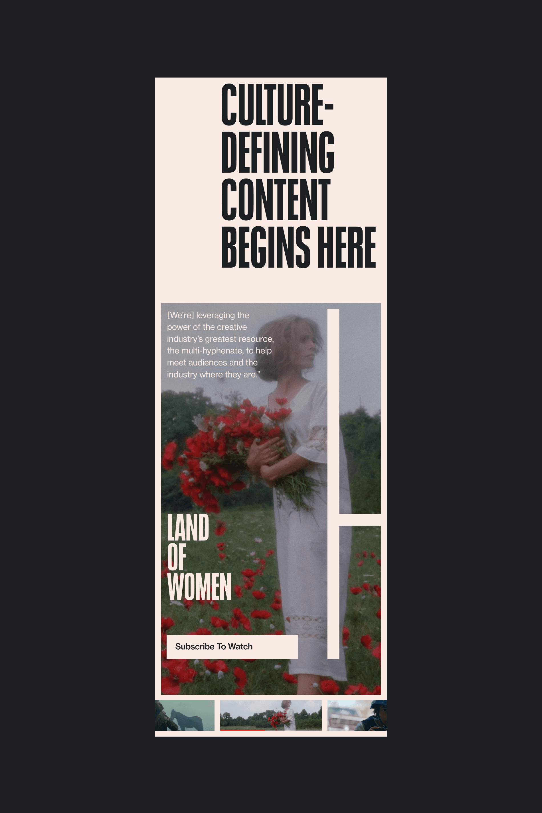 I designed the concept of their web platform to clearly express its mission and connect talent, funding, and production in one place.